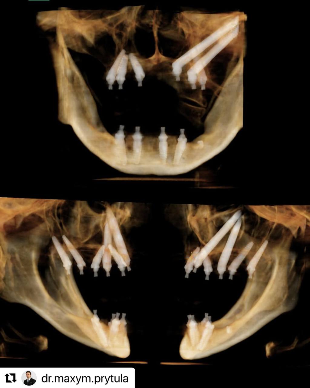 Residual bone and anchorage points are a hot topic of discussion at the moment, due to different schools clashing on what approach is more stable: a 10- mm tilted palataly exposed implant or a 30+ mm zygomatic implant. In this specific clinical case we had the opportunity to properly utilise both techniques in respect to the indications for them.